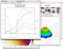 Various levels of access and use are available: you can make plots using the set of fast and easy tools provided, and you can as well handle a whole project of data visualization. You program directly data visualization objects (for example a curve, a contour map, a 3d surface).