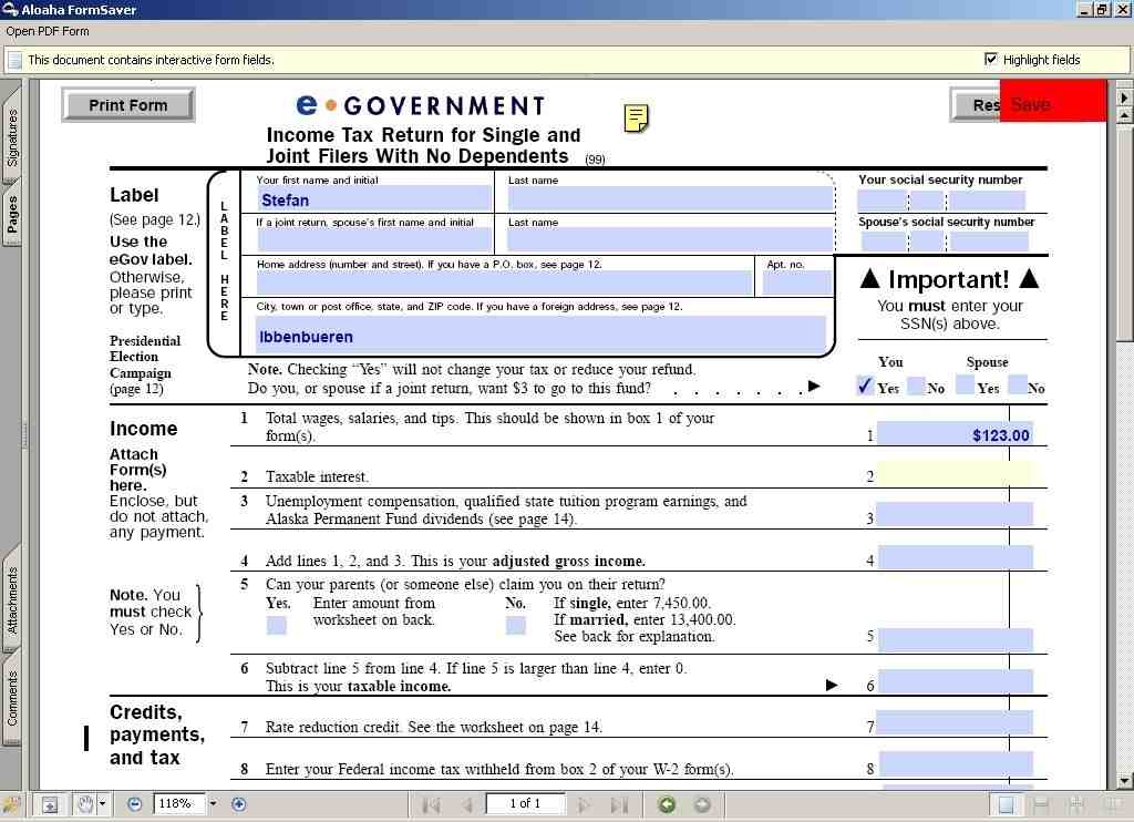 A OCX Version inclusive sample source code of the PDF Saver is also included. You can also retrieve the Form Data as an XML File to archive it in your database.
