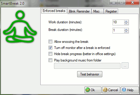 This program is a revolutionary ergonomics program that reminds a person to take breaks whenever working on a PERSONAL COMPUTER for long hours. In contrast to similar programs which help remind you to take breaks or cracks at fixed intervals, This program actually monitors the method you spend time on the PC and then encourages you to definitely rest at the particular appropriate time. This efficiently means that you are able to invest more time in front side of a PC along with very efficient break period utilization.