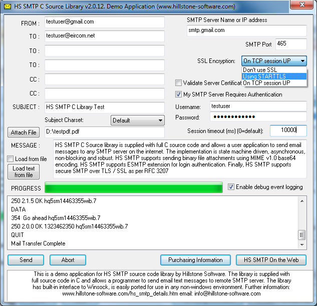 From version 2. 0. 0 This program Development facilitates secure SMTP over TLS / SSL (RFC 3207)