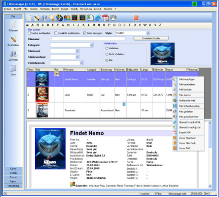 This program is a program with which you are able to manage your movies easily. With this program you are able to load information straight from the amazon data source, or from an avi-file.