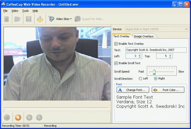 If you arent familiar with the Internet phenomenons YouTube and MySpace, you are missing out on one of the biggest things to hit the net since instant messaging. YouTube and MySpace are popular video sharing Websites where users can upload, view, and share video clips. With CoffeeCup Video Recorder, anyone can put videos on popular sites with no experience. Video Recorder can use any Webcam or video capture device to record video directly into the program. Once you record the video, the real fun begins! You can add text overlays to brand your video, or add images to the beginning and end of the movie to give it "movie production" sense. CoffeeCup Video Recorder strolls you through the entire setup process step-by-step with easy-to-read instructions. Once your video has been recorded, simply click the Produce Video button and adhere to the onscreen steps. In a matter of minutes, your videos will be live on the Web for everyone to see. The output from Video Recorder is a Flash Movie File (FLV). This movie file is universally used by all video sites, so this makes the import process even faster to your favorite video discussing site. The videos created by CoffeeCup Video Recorder can also be added to our some other video applications such because CoffeeCup Ad Producer and CoffeeCup Video Player.