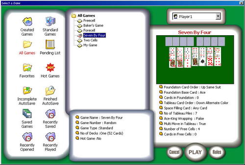 Create and play your own Klondike Games with this highly customizable Klondike Game Studio. You can customize entire Klondike rules by selecting Number of Tableau piles, Tableau arranging order, Foundation arranging order, foundation base card, number of cards in foundation ace-king wrapping in tableau and multi card move in tableau. This program Development features 999 trillion (999, 999, 999, 999, 999) shuffles, Unlimited Undo and Redo, Undoall and Redoall, Replay Forward, Replay Back and Replay All, General, Game-wise, Date-wise and Player-wise Games Statistics with Chart, Session wise Summary and details with chart, High Score Statistics by General, Game, Player, Score, Moves and Time wise, Full Statistics Log by Players, Games and Date wise, Export Statistics and Clear Statistics features, Recent Games List, Game History, Random Range Selection between 9 and 999 trillion, Create, Modify and Delete Players, Customize Backrounds, Sound and Card Deck, Selectable Card Speed for all moves, Add, Organize, Play and Clear Favorites Games List and more.