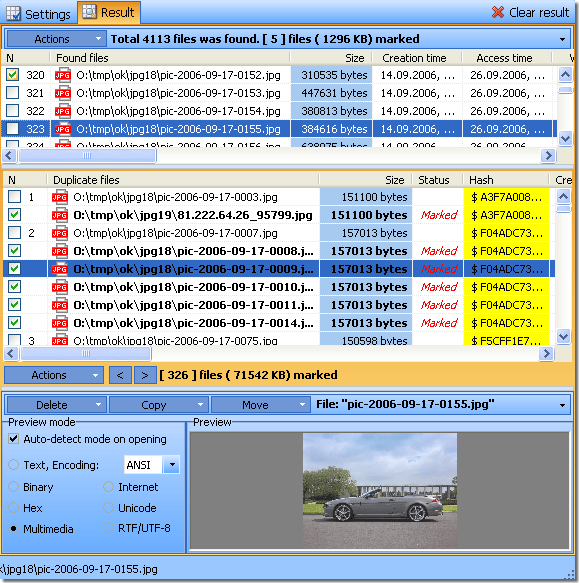 Copy File Detector is the powerful tool to research for file duplicates upon your computer. It may find duplicates of any kind of files: text, binary, songs, video or images. The particular following criteria may be used research for duplicates: filename, quality, or file content. With regard to multimedia files (MP3, OGG/Vorbis, WMA), the content associated with the following tags may be also analyzed: "Artist", "Album", "Title" and "Comment". Let Duplicate File Metal detector analyze the contents associated with your hard drive plus you will be amazed seeing how many similar files you have! A person can free disk area by deleting duplicates, yet be careful: do not really delete files if a person are not sure info! If you store 100s and even thousands of files, pictures, photos, music plus video files, you frequently feel in doubt: inch... it seems that We already have these document, but where!... ". Copy File Detector is here now in order to help you. This system is a powerful however easy-to-use tool for looking for file duplicates. Avoid waste your time searching through directories to discover duplicates, leave this in order to the smart program. More info: http://www.al-soft.com