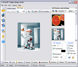 ReaGIF is our own popular image converter, enabling you to convert images from most often used graphic formats in order to GIF. You can transform you images to GIF both by one or even all at once like a batch job.