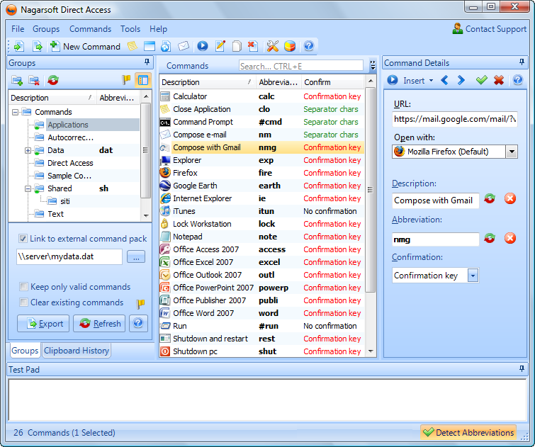 This program Development can be used to carry out many tasks quicker and more precisely. For instance, you can use it to execute commands by typing user-defined abbreviations across all applications; save time on repetitive tasks: open files, documents, websites, and insert text just by typing a word; open your favorite websites by typing a meaningful name; automatically search the web -- Google, Wikipedia or Amazon are just a few keystrokes away; insert the same autotext anywhere -- even in applications without having built-in autotext; breeze via e-mails using combinations of boiler-plate text.